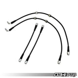 This 034Motorsport Stainless Steel Braided Brake Line Kit features Teflon linings, stainless steel braided reinforcement, and a protective black PVC covering. All lines are Manufactured to Meet or Exceed DOT Test and Construction Standards.