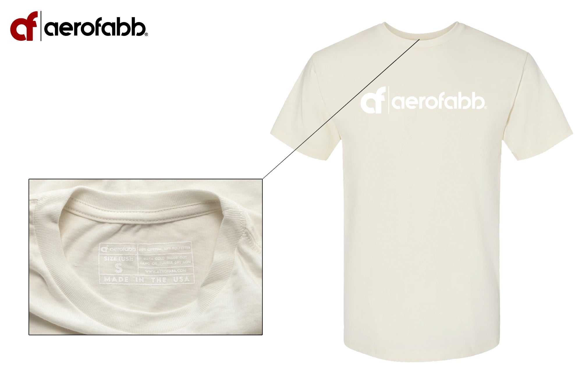 High quality original aerofabb bone white premium T-shirt featuring the aerofabb logo in white.