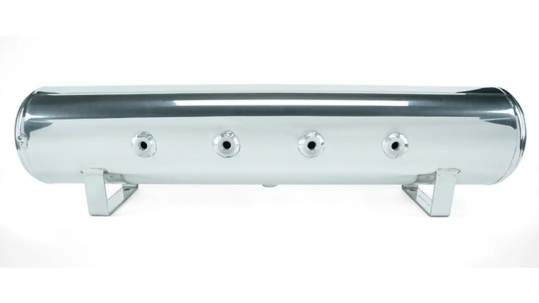 4 Gallon 7-Port Polished Tank w/ Viair 444c black compressor, 1/4" & 3/8" fittings & tank mounting hardware.