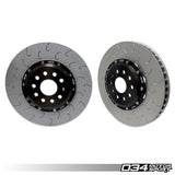 The 034Motorsport 340mmx30mm 2-Piece Floating Front Brake Rotor Upgrade Kit for the 8VW Mk7/7.5 GTI w/ Performance Pack, VW Mk7/7.5 Golf R, and Audi 8V/8V.5 S3 is a complete replacement brake rotor kit, designed to work flawlessly with the factory front calipers. Upgrading your front rotors will increase overall braking performance in street, track, and HDPE driving conditions, as they keep your brakes cool and strong all day long!