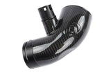Regardless of application, a Dinan turbo inlet replaces the weak, and failure prone, plastic factory inlet with a more robust carbon fiber one. CNC machined fittings are utilized to ensure proper fitment and guarantee installation as a direct replacement to the OEM inlet. Beyond material and fitment however are the improvements to the characteristics of the primary element in the system, the pipe itself. The stock turbo inlet has incorporated additional features (multiple in some cases) that introduce flow restrictions and turbulence while also reducing turbo noises. All of which are unwanted but easily rectified by removing the various resonators and enlarging (and optimizing) the path for a more uniform flow. The result is an inlet that delivers not only more air and allows the turbo to be more efficient (work less) but also provides the oft desired amplification to the turbo induction soundtrack.