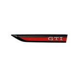 Genuine VW Mk8 GTI side fender badge/emblem with a black/red background and chrome GTI letters. This listing is for the left side badge/emblem only.