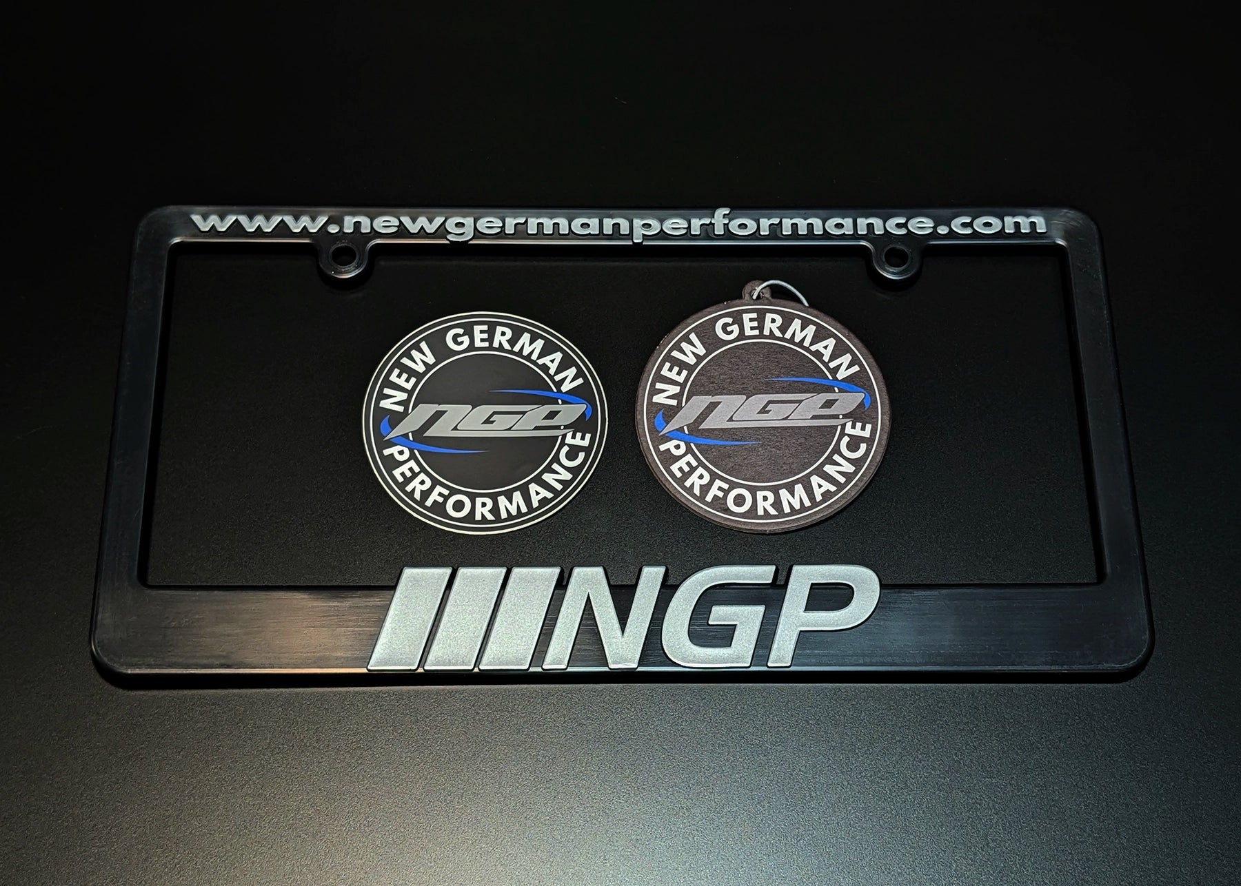 - 1x NGP License Plate Frame in your choice of chrome or silver