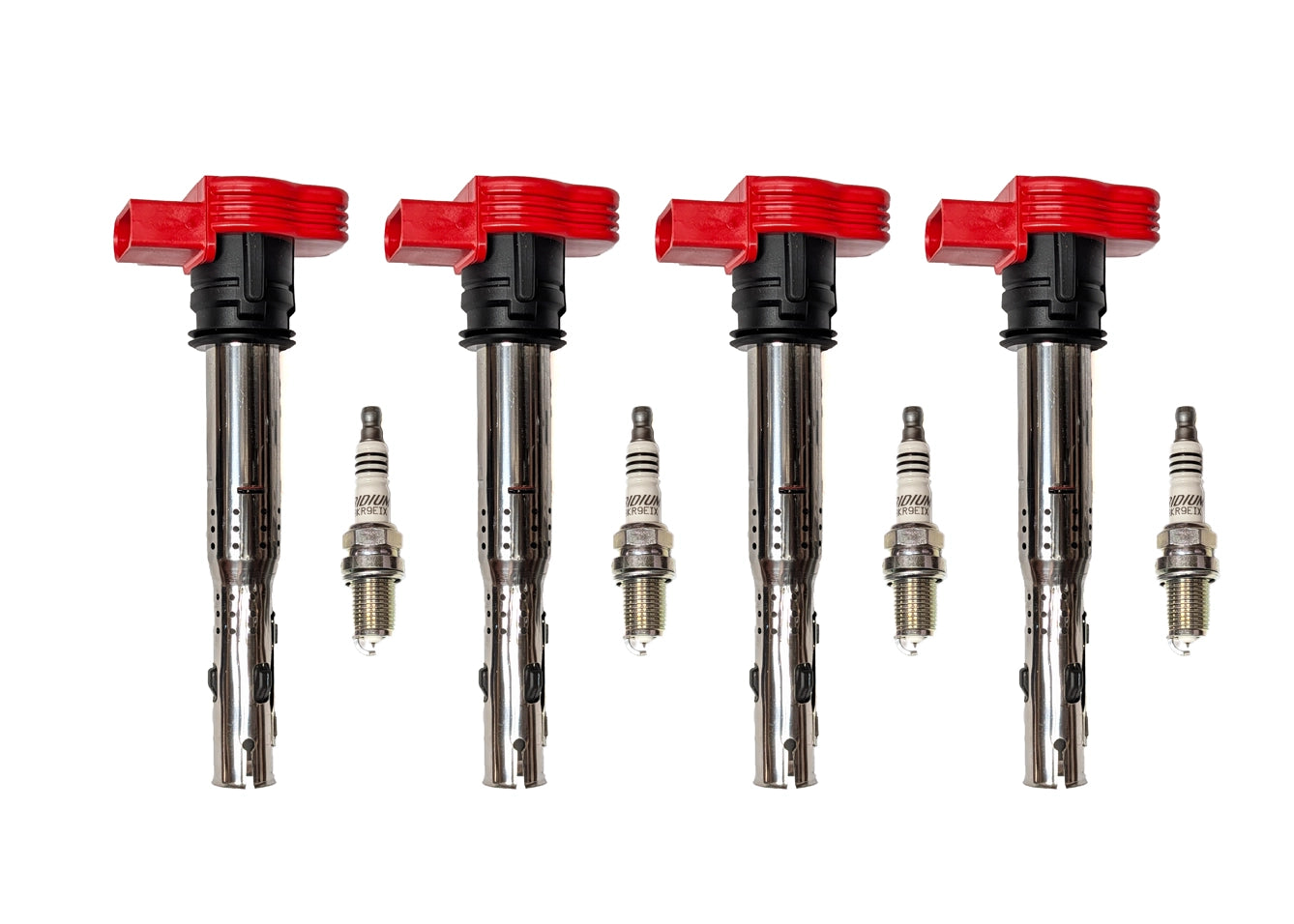 High quality OEM Eldor red Audi R8 ignition coil. Fits all VW and Audi EA113 FSI 2.0T, EA888 Gen 1/Gen 2 TSI 2.0T engines. If you're experiencing misfires, have a loss of power along with a flashing check engine light or EPC light, chances are that your coilpacks are failing. Easily replace them with these ignition coils and be misfire free. While you've got the coilpacks out, go ahead and replace them with the spark plugs included in this kit.