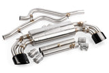 The APR Catback Exhaust System personalizes your vehicle's looks, sound and performance. Beautifully hand-crafted T304-stainless-steel components adorn the system with stunning TIG-welding throughout. APR's straight-through brushed-finished mufflers smooth the exhaust note to a deep growl, without adding restrictions or rasp. Strong high-quality bracketry and OEM-style clamps hold the system steadily in place, making the install or removal a snap, and fitment simple, yet precise. Dual 2.5" mandrel-bent exhaust paths provide an ultra-smooth path, steadily feeding exhaust gasses out of the quad exit system, while looking tidy from under the rear bumper. APR's cast valve housings enable the vehicle to be fitted with the factory electronic valve actuators, retaining OEM valve operation for variable sound levels. Finally, APR's 170x112mm ovalized diamond black exhaust tips finish the system, adding a classy RS-inspired touch to the rear of the vehicle.