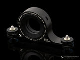 The stock center support bearing carrier holds the driveshaft in place with rubber so thin that only about 20 lbs of force will move it from center to the end of its travel. While that’s great for making sure no NVH makes it to the cabin, the stock bushing is extremely prone to failure, especially in harsher climates and on higher-powered cars. Even on the best-kept cars, the stock rubber bushing sags, dry rots, and cracks by the time it’s 10-15 years old. When the bushing lets go, it leads to excessive vibrations and clunking which can damage the transmission and rear diff. To make matters worse, the stock carrier is molded onto the center support bearing, leading to costly driveshaft replacement.