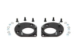 The BMW M5 and M6 come stock with adjustable camber. Dinan's Camber/Caster Plates shift the range of the stock adjuster by -0.7 degrees and 1 degree of caster providing for a more aggressive negative camber setting that dramatically improves grip in the turns for reduced understeer and razor-sharp turn-in. Aggressive drivers will benefit from reduced outside edge tire wear as well.