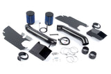 The design goal for the M5 High Flow Cold Air Intake System was very specific: ensure that the powerful M5 engine is breathing plenty of cool oxygen-rich air for maximum performance under varying driving conditions. The system replaces the factory air-boxes with proprietary twin high flow air filters feeding large diameter intake plumbing, carefully designed to minimize air turbulence for maximum intake airflow. The filters are relocated outside of the engine compartment behind the front bumper and below the headlights insulating the intake from under-hood heat. Additional heat shields are incorporated in order to block the flow of power-robbing hot air passing over the radiator. The system also includes modified fog light trim rings for a ram air effect at speed.