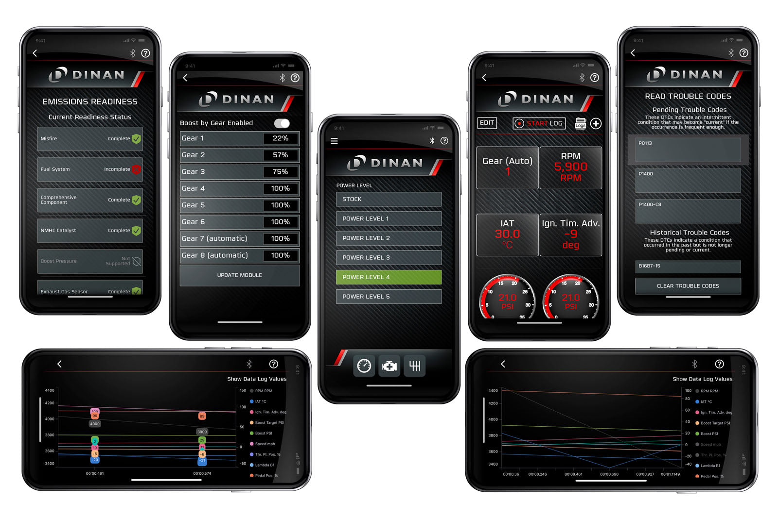 Safety and reliability have been cornerstones of the Dinan brand for generations and not only does the Dinan PCU not hinder any factory safeguards or emissions controls but incorporates its own safeties as well. Going one step beyond our own internal protections, the PCU also grants the end user the ability to monitor up to 20 different engine parameters in real time via customizable in-app gauges for verification of worry-free operation. Those same parameters can also be logged/viewed in app (or exported to CSV) for further scrutiny if desired.