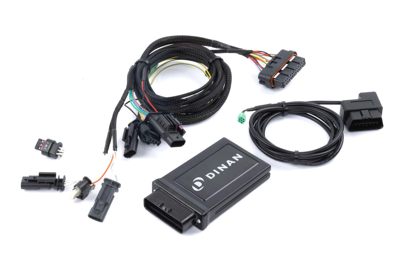 Developed wholly from the ground up, the Dinan Power Control Unit (PCU) is an evolutionary step in Dinan in-line tuning modules based off over a decade of lessons learned in the category. At its core the PCU is similar to its precursors and installs in between select sensors and the ECU, adjusting these signals in order to achieve increased performance the stock programming is unable to approach. However, what sets the PCU apart is its integration into more than just the fundamental boost sensors but also additional connections -- inclusive of OBDII. The result is a more capable system that can do so much more than just increase power. Live monitoring of vehicle health via logging, customizable gauges, and code reading/clearing, among others, are now possible ensuring a seamless tuning experience even a novice can be comfortable with.