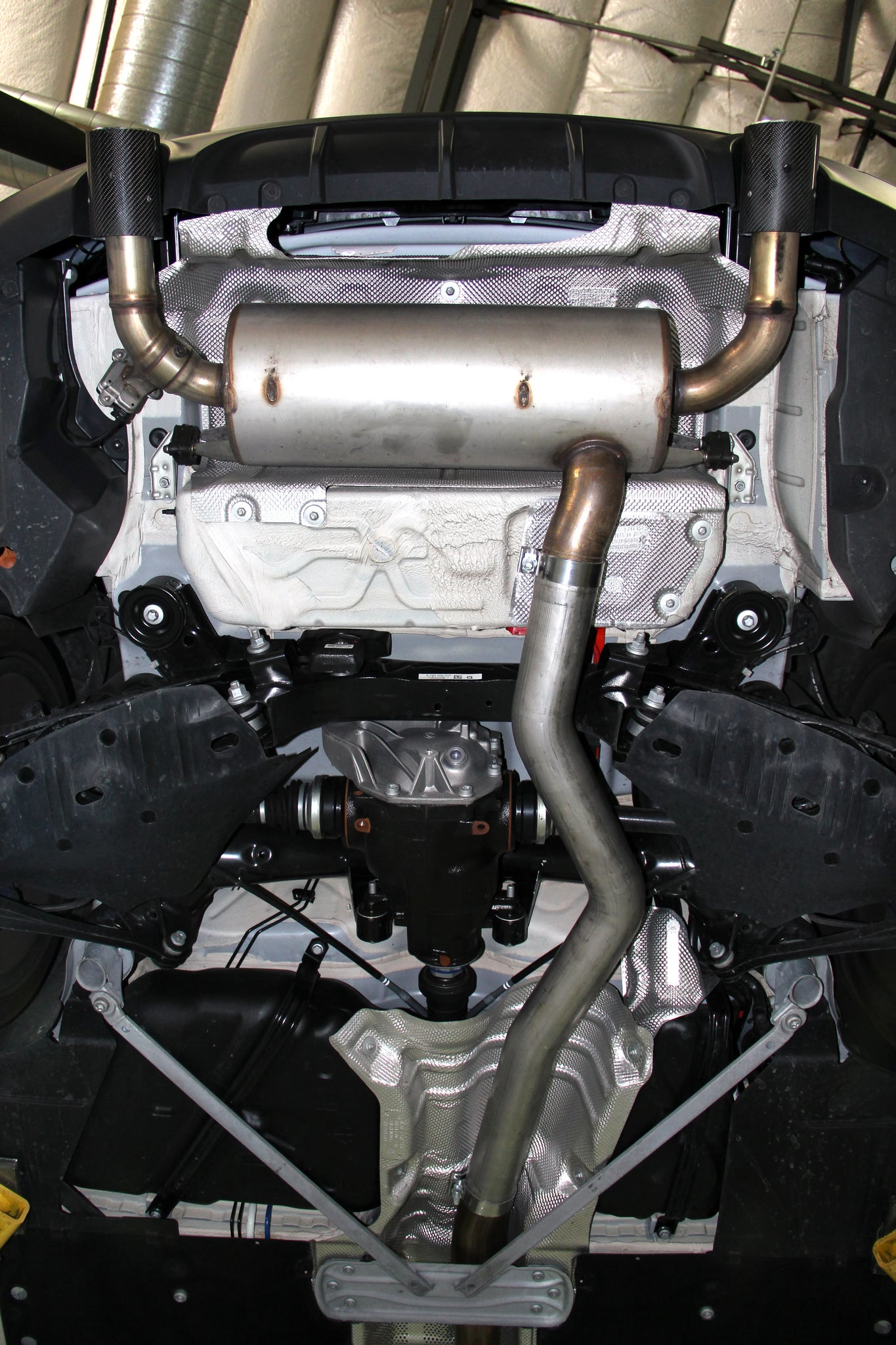 - Stock hydro-formed 80mm piping is replaced by 3.25" (82.6mm) mandrel-bent piping for free flow.