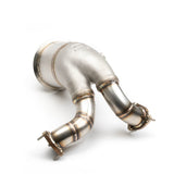 IE downpipes are manufactured with quality materials for lasting strength and performance. The T304L stainless steel investment cast body smoothly transitions exhaust flow from the massive 6" CAT to the dual 2.5" mandrel bent exhaust legs. All joints are hand TIG welded using precise fixtures and tooling for a seamless, leak-free fit.