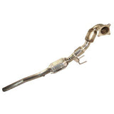 T304 Stainless Steel Passat & CC 2.0t 2.5" Downpipe with High Flow Dual Cats for std. exhaust or TT exhaust. Dual cat version has 2 year warranty. (46 STATE ONLY)