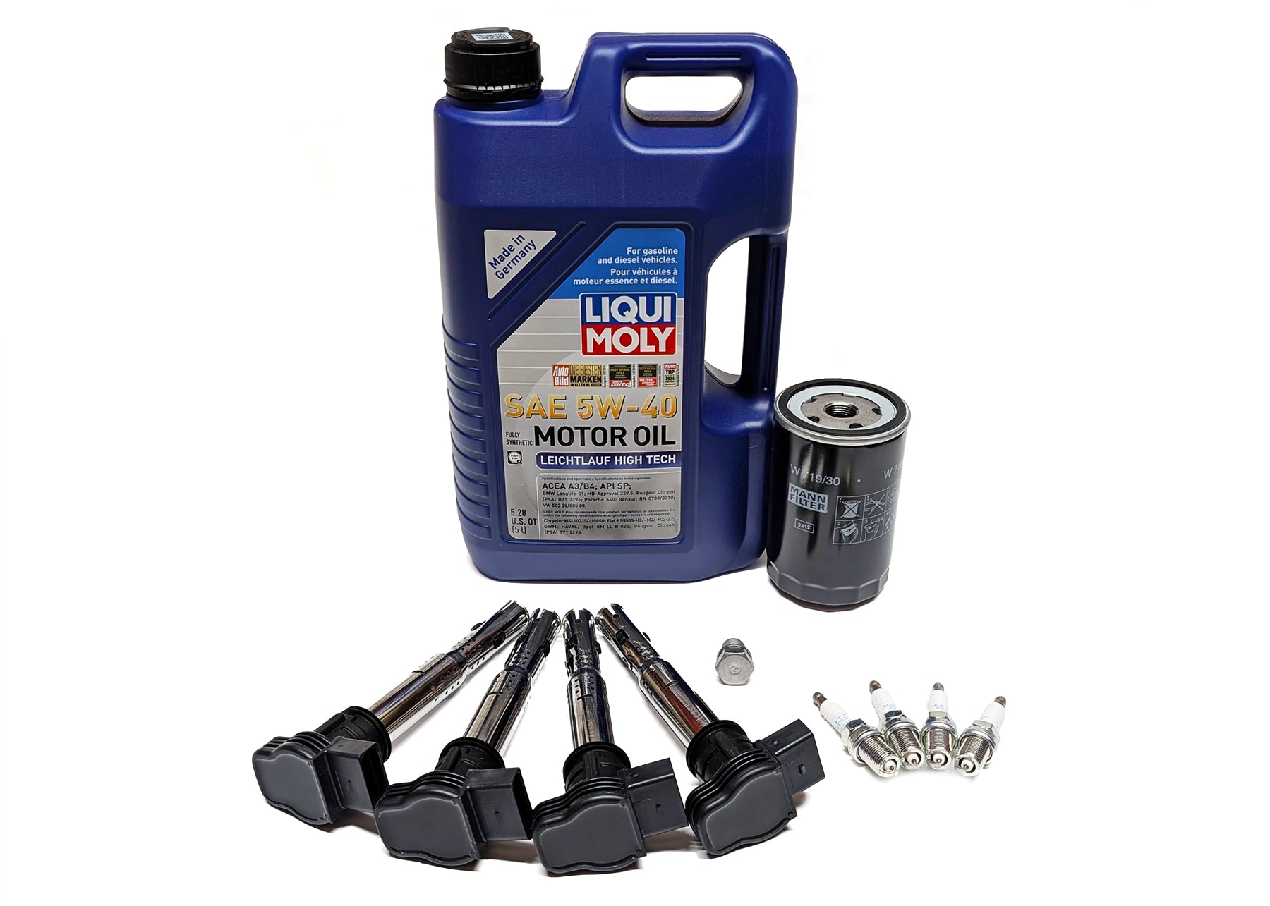 Tired of your 1.8T feeling slow or running rough? Get it running right with this complete tune-up service kit. Covers an oil change and complete ignition service.