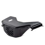 The intake takes advantage of multiple air supply avenues to support any power level. The front large air inlet receives outside high-pressure flow from the front of the grille and acts as a ram air design for most of the air supply. Additionally, the filter plate louvers pull extra required air from the low-pressure zone under the intake. These dual zones provide a free air supply across the entire filter and ensure your intake will never be a power limiter for even the most extreme builds.