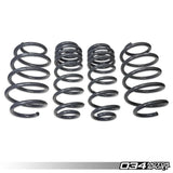 Dynamic+ Lowering Springs were engineered and tested in-house at 034Motorsport to deliver superb ride quality and optimal handling performance. Designed as a true no-compromise solution, Dynamic+ Lowering Springs provide an aggressive yet functional stance, and reward drivers with precise vehicle control and OEM+ comfort levels. Dynamic+ Lowering Springs were thoroughly evaluated on the street and track on 034Motorsport's VW Mk6 GTI Development Vehicle, and by independent Audi enthusiasts before release. The selected spring rates, unique dual-rate spring design, and ride height are the culmination of months of testing - thousands of miles of commuting and countless track days - resulting in a lowering kit that is perfectly matched to the factory dampers.