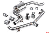 The APR Catback Exhaust System personalizes your vehicle’s looks, sound and performance. Beautifully hand-crafted T304-stainless-steel components adorn the system with stunning TIG-welding throughout. Our straight-through brushed-finished muffler smooths the exhaust note to a deep growl, without adding restrictions, rasp or drone. Strong high-quality bracketry and OEM-style clamps hold the system steadily in place, making the install or removal a snap, and fitment simple, yet precise. A cast 3” to dual 2.5” rear splitter creates an ultra-smooth transition, steadily feeding exhaust gasses out of the system, while looking tidy from under the rear bumper. Finally, removable 4" polished slash-cut exhaust tips finish the system, adding a classy motorsport-inspired touch to the rear of the vehicle.