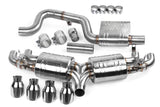 The APR Catback Exhaust System personalizes your vehicle’s looks, sound and performance. Beautifully hand-crafted T304-stainless-steel components adorn the system with stunning TIG-welding throughout. Our straight-through brushed-finished mufflers smooth the exhaust note to a deep growl, without adding restrictions, while our Helmholtz resonator reduces unwanted frequencies. Strong high-quality bracketry and OEM-style clamps hold the system steadily in place, making the install or removal a snap, and fitment simple, yet precise. A cast 3” to quad 2.5” rear splitter creates an ultra-smooth transition, steadily feeding exhaust gasses out of the system, while looking tidy from under the rear bumper. Our cast valve housings enable the vehicle to be fitted with the factory electronic valve actuators, retaining OEM valve operation. Finally, removable 4" polished slash-cut exhaust tips finish the system, adding a classy motorsport-inspired touch to the rear of the vehicle.
