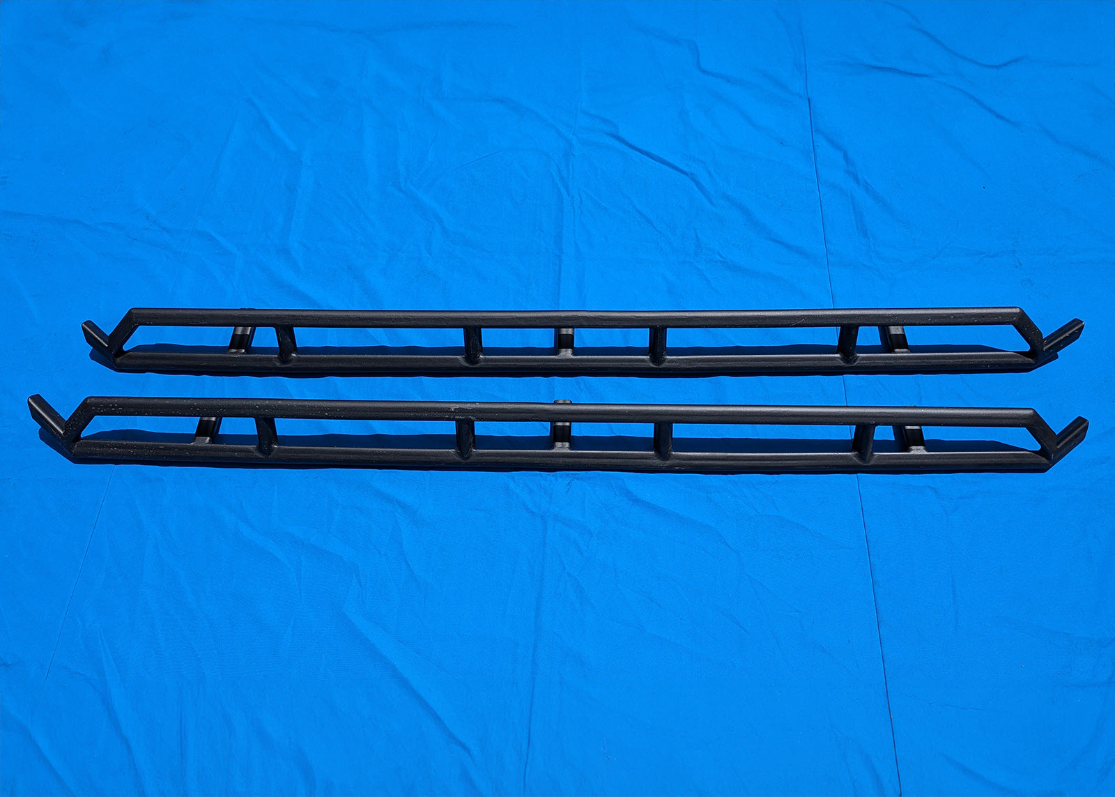 Because of the build's conceptual nature, the guards should be considered light-duty and not "trail rated". These pieces will not help you secure a King of the Hammers trophy, but they should keep smaller, much less aggressive obstructions at bay. We also must note that the guards and rear wheel carrier will require cutting/modifications to fit your vehicle. All mounting hardware and some already modified plastic Q7 body trim pieces (see images) are included with this the sliders. We've priced each piece of the build individually, and discounts are available if you're interested in multiple pieces. All sales are final, buyer pays shipping.
