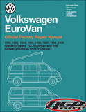 The two volumes of this Volkswagen Official Factory Repair Manual present the service and repair information for Volkswagen EuroVan, EuroVan MultiVan (including Weekender), and EuroVan CV Camper (commonly known as Westfalia camper) models sold in the USA and Canada. For the professional automotive technician, this manual includes the specifications and procedures that were available in an authorized Volkswagen dealer service department as this manual went to press, including: