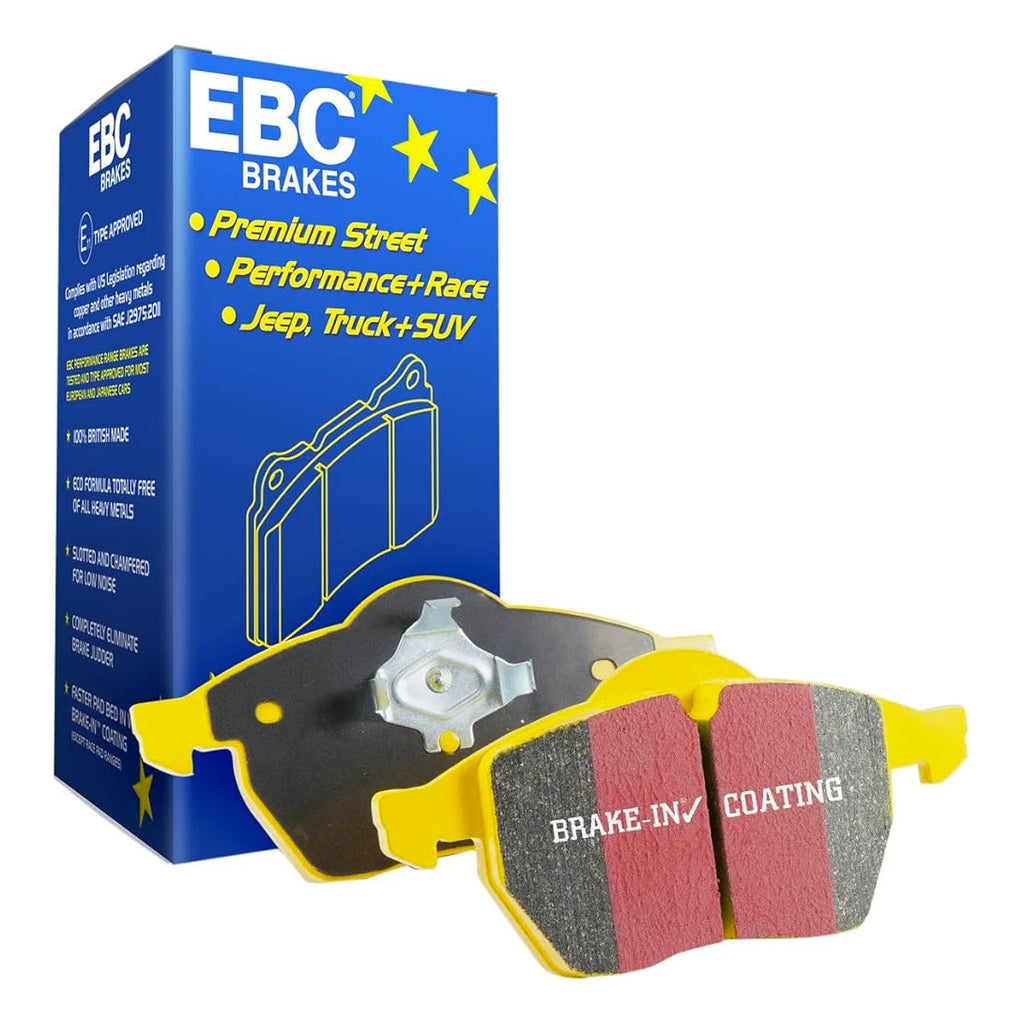 EBC Yellowstuff is a high-efficiency performance brake pad for high friction and improved stopping power on modern vehicles. They work well from cold and self seat after installation due to its applied brake-in surface coating.