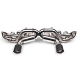 Wondering why your GT4 RS doesn’t have the same high pitched scream of the GT3? The Fabspeed Valvetronic X-Pipe is the solution! The Fabspeed X-pipe design merges the two exhaust banks for an intoxicating 9000 RPM symphony. Even though this system will net you a significant increase in volume over stock, the valved design allows you to control the volume with the factory PSE (Porsche Sport Exhaust) button, quieting the exhaust note for a drone free driving experience.