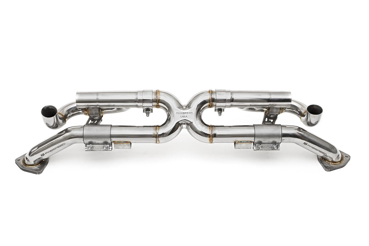 Improve the tone of your exhaust, increase power and save weight from your 991 Carrera with a Valvetronic Center Muffler Bypass X-Pipe. This Valvetronic exhaust preserves the functionality of your stock valved system and if your car does not have a driver controlled valved system you can add that functionality with our valve controller. Just select "Standard Exhaust" from the dropdown menu. This exhaust great compliment to either the factory valved side mufflers or to Fabspeed's Maxflo Performance Side Exhaust System.