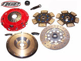 This is a “build to order” clutch kit intended for cars with extreme HP modifications exceeding the stage 3 parameters. The Race Engineered pressure plate is modified for maximum plate load. The discs are puck design with sprung and un-sprung options. Friction material options include Sintered Iron and Graphite Impregnated Ceramic. Engagement characteristics can be abrupt. Hydraulic systems may need enhancing for proper clutch separation. Single mass steel SFI approved flywheels are required for safety. Torque ratings are calculated at time of ordering.