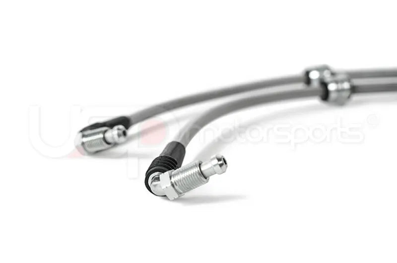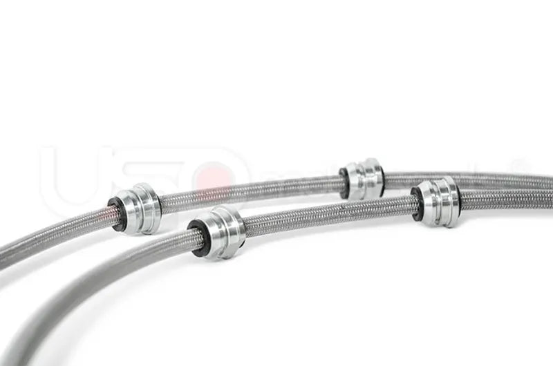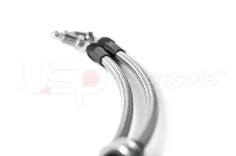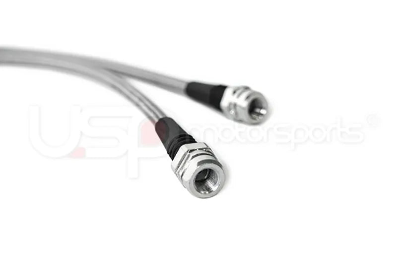 Stainless steel brake lines replace your factory rubber lines and provide more consistent braking. Your car's brake system operates at over 1,000psi under hard braking conditions; the factory rubber lines cannot perform and begin to expand. This leads to a "spongy" brake pedal or a slight delay in brake engagement. This can be catastrophic when driving in spirited race conditions. Stainless steel brake lines replace these factory lines and with a stainless steel woven exterior, these lines will not expand even under the harshest conditions. All USP brake lines are a direct replacement for the factory brake lines and can be installed in just a few hours.