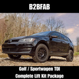 This B2BFAB Camber Correcting Lift Kit package has been compiled to offer peak performance on road and off for the Golf and Golf Sportwagen TDI models.